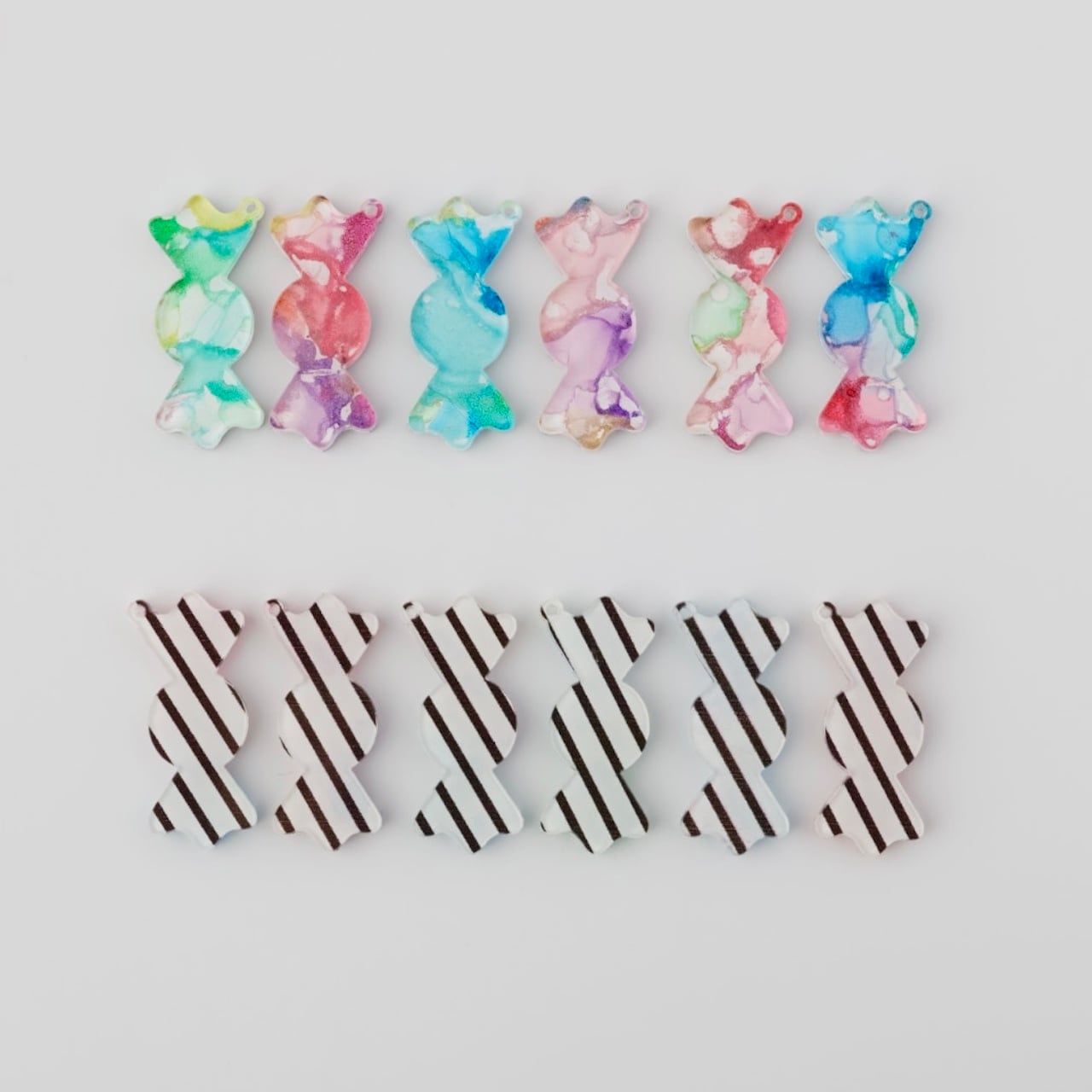 透明感のあるアクリルに、アルコールインクでひとつずつ描かれた幻想的な色模様。