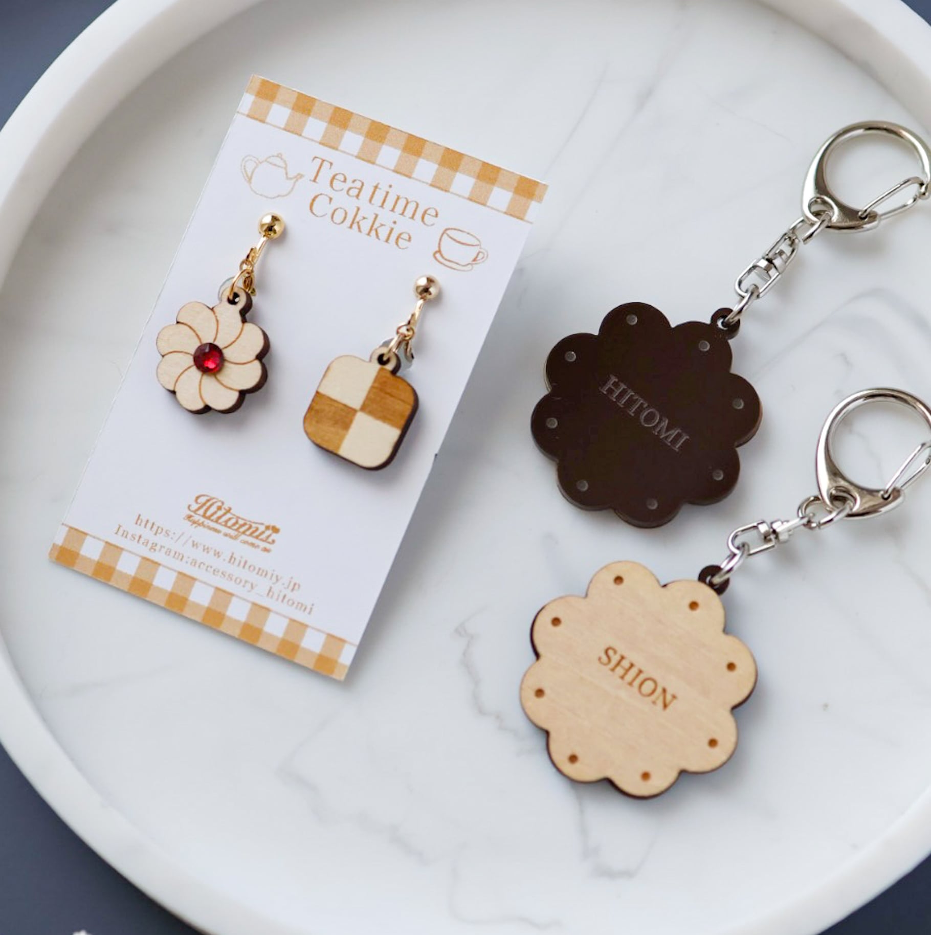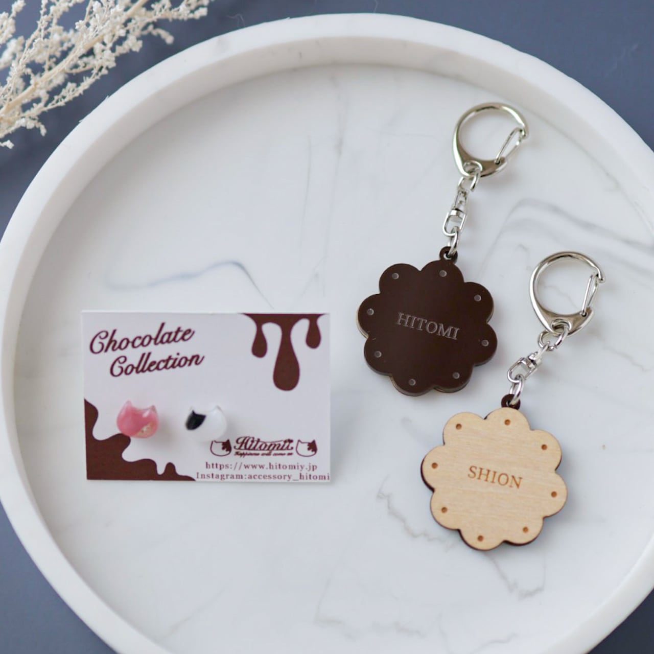 好きなアルファベットが刻印されたクッキーのキーホルダーになってます!