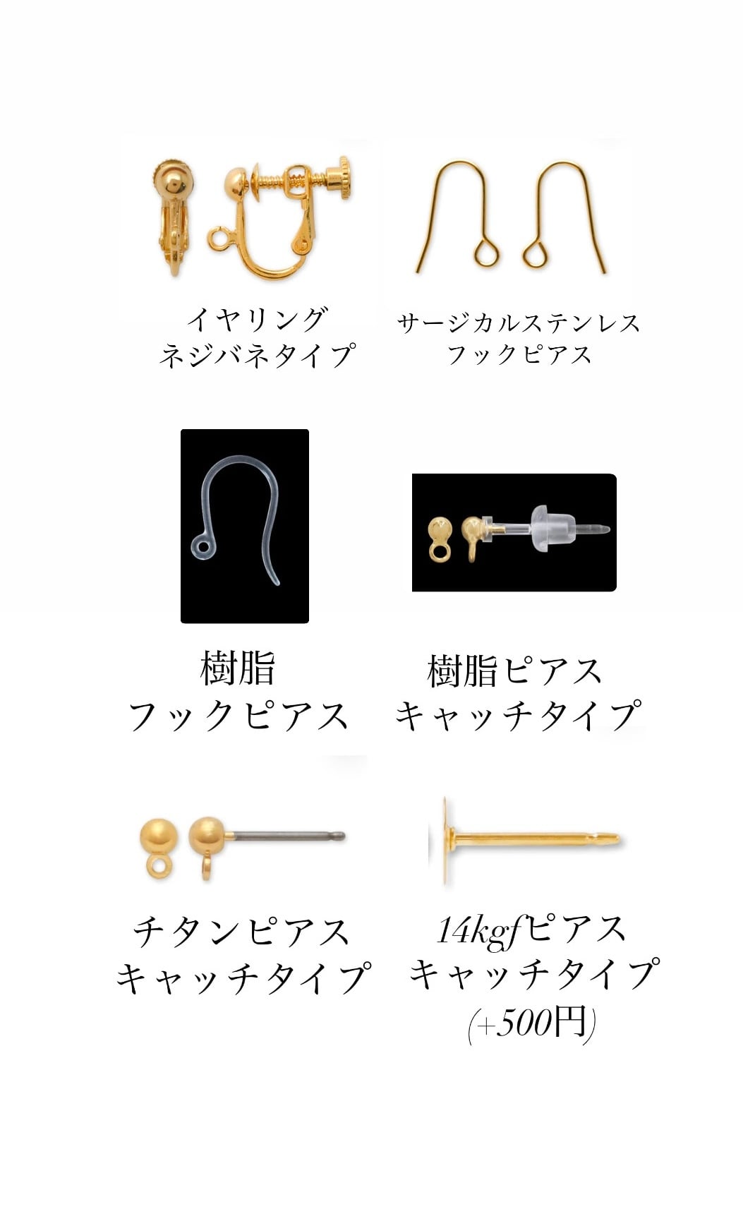 樹脂イヤリング(ノンホールタイプ)